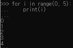 i라는 변수가 0 <= i < 5 범위에 속해 있는지 조건을 확인합니다. 조건에 충족이 되면 값을 출력합니다.