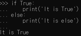 조건문에 True를 준 경우입니다. 참이기 때문에 It is True가 출력이 되었습니다. 참이 아닌 경우에는 else 구문으로 넘어가 It is else가 출력이 되겠습니다 :)