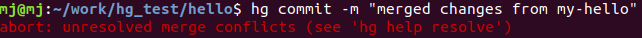 abort: unresolved merge conflicts (see 'hg help resolve')