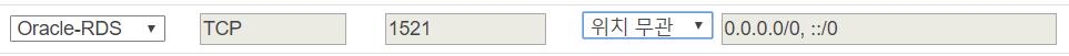 아래 규칙은 오라클-RDS를 "위치와 무관하게 모든 접속을 허용하겠다"입니다.