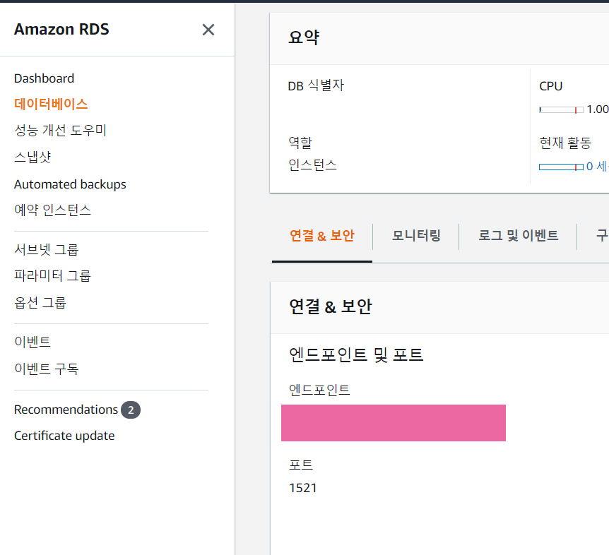 이제는 AWS로 접속을 하신 다음에 RDS 창으로 들어가 주세요.