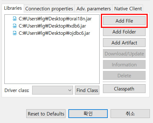 AddFile 버튼을 눌러 다운로드한 파일을 추가해주시면 되겠습니다.