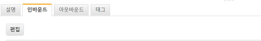 페이지가 바뀌고 또 아래로 내려와 주시면 인바운드-편집 버튼이 보입니다.