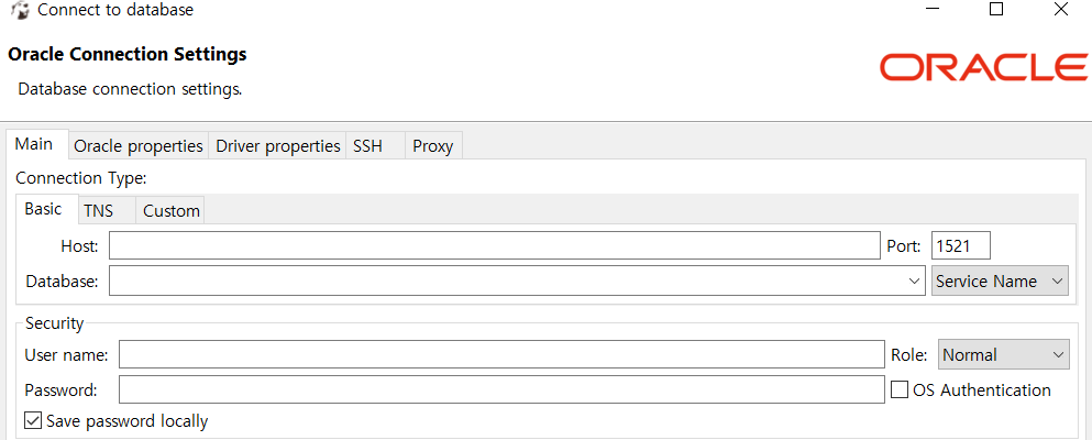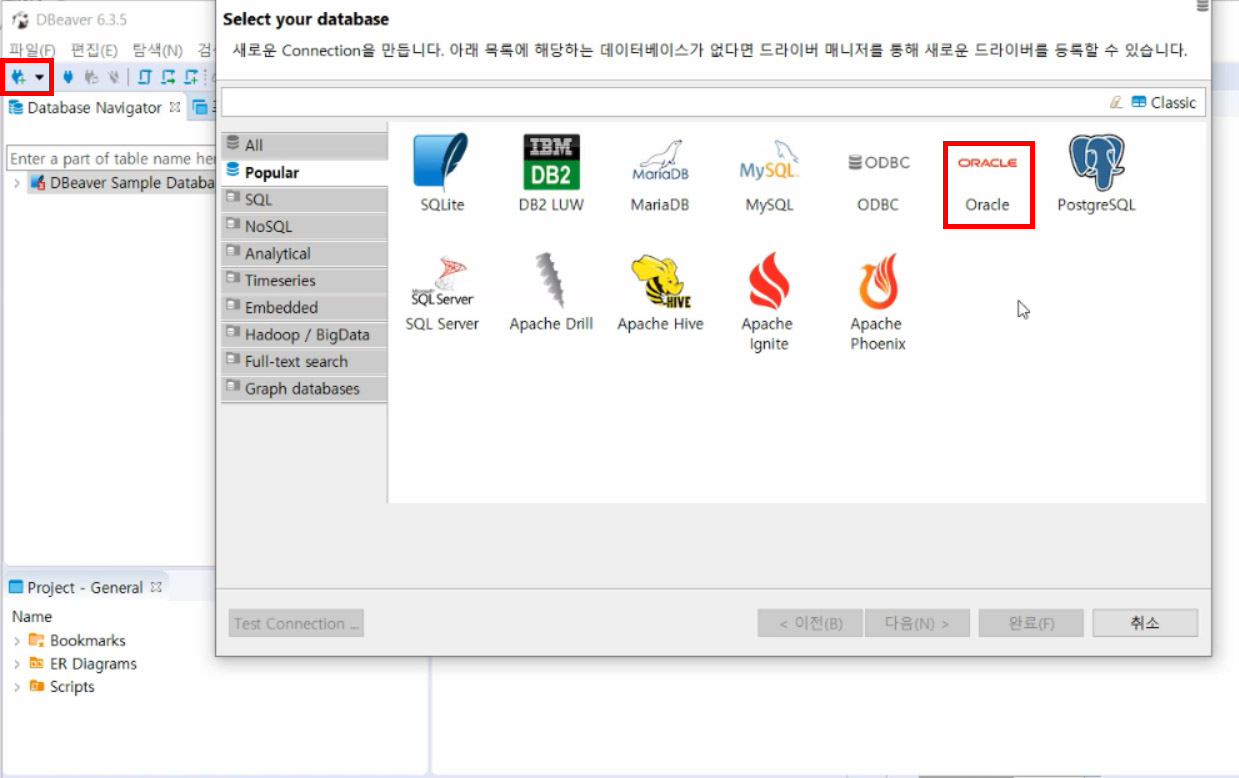 왼쪽에 콘센트를 누르신 다음에 오라클을 선택해주시면 되겠습니다.