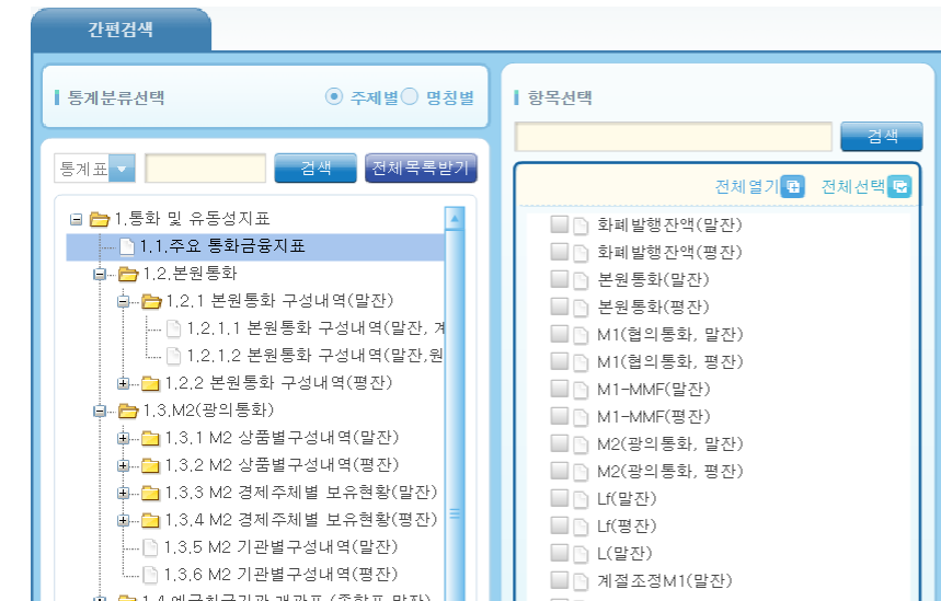 M1과 M2 값은 한국은행경제 통계시스템에서 각각의 값을 확인 할 수 있습니다.