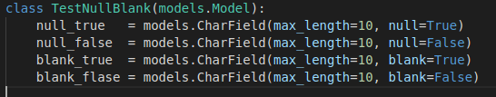 null이 허용되는(null=True) 첫번째 컬럼 null_True를 제외하고는, 모두 null 값이 허용이 안됩니다.