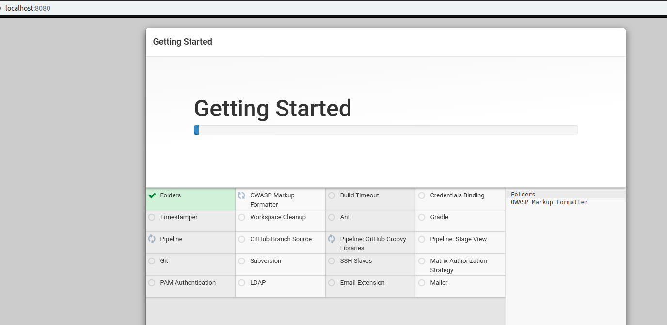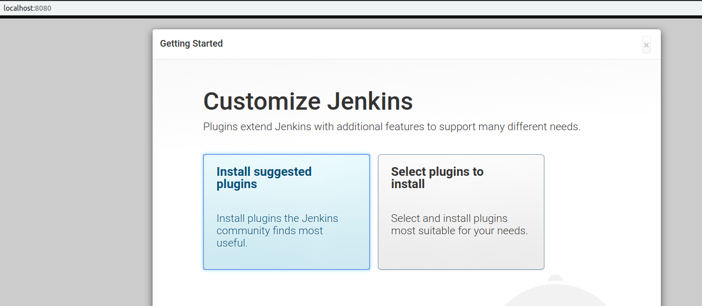 다음으로 Install suggested plugins를 클릭하여 젠킨스 설치를 진행해주세요.