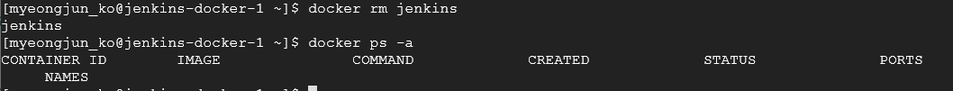 기존의 컨테이너 이름을 삭제하고, 삭제가 잘 되었는지 확인해주세요.