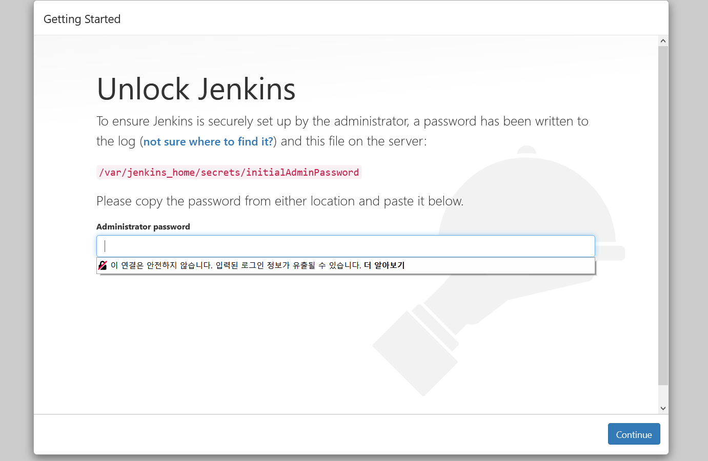 그리고 해당 IP:8080 으로 가시면 젠킨스의 접속을 하실 수 있습니다.