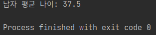 샘플 내용은 남자의 평균 나이를 구하는 구문입니다.