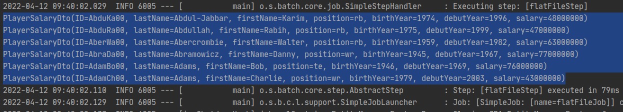 public Step flatFileStep(FlatFileItemReader<PlayerDto> playerFileItemReader,