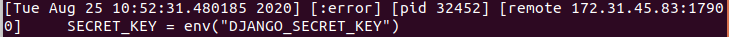 이제부터는 eb logs 명령어를 통해서 직접 하나씩 하나씩 확인을 해보겠습니다. (위의 화면은 로컬에서는 노란 화면으로 debug 모드로 확인이 가능하나, 상용에서는 debug 모드가 False로 되어 있어 로그가 보이지 않습니다. 상용에서도... 보고 싶으시다면 세팅에서 변경 가능합니다.)